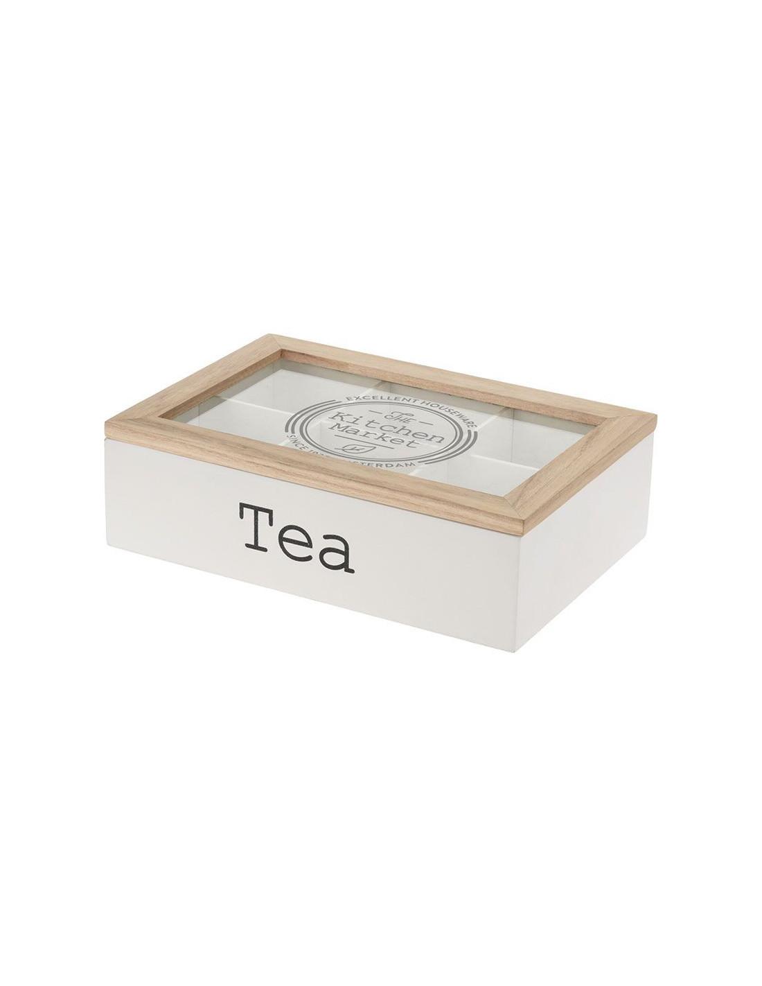 Elegante houten theekist met 6 vakken, perfect voor het bewaren en presenteren van diverse theesoorten. Gemaakt van duurzaam beukenhout en MDF, met een glazen deksel en afmetingen van 24 x 16,5 x H7 cm. Deze theedoos is ideaal voor zowel persoonlijk gebruik als een stijlvol geschenk.