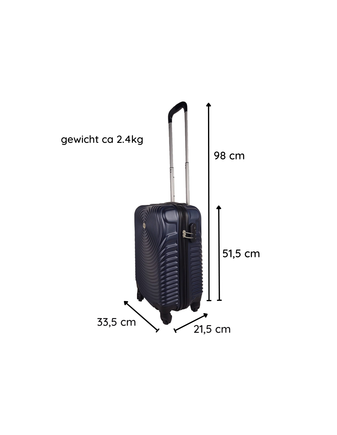 Ceruzo Handbagage Koffer - 51.5 cm - Blauw: Ontdek deze prachtig ontworpen, moderne en stevige handbagagekoffer. Het geribbelde design biedt extra bescherming aan je bezittingen. Ideaal voor weekendjes weg of als handbagage tijdens lange reizen. Met 33,5 x 21,5 x 51,5 cm (lxbxh) past hij in de cabine. Slechts 2,4 kg, met 4 dubbele zwenkwielen voor moeiteloze verplaatsing. Cijferslot voor veiligheid. Stijlvol blauw design voor een statement-look op reis. Ontdek de perfecte balans tussen functionaliteit en design met Ceruzo.