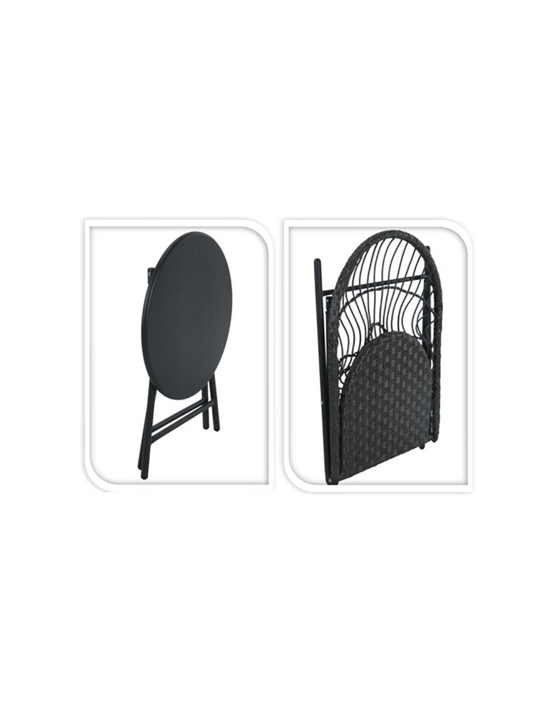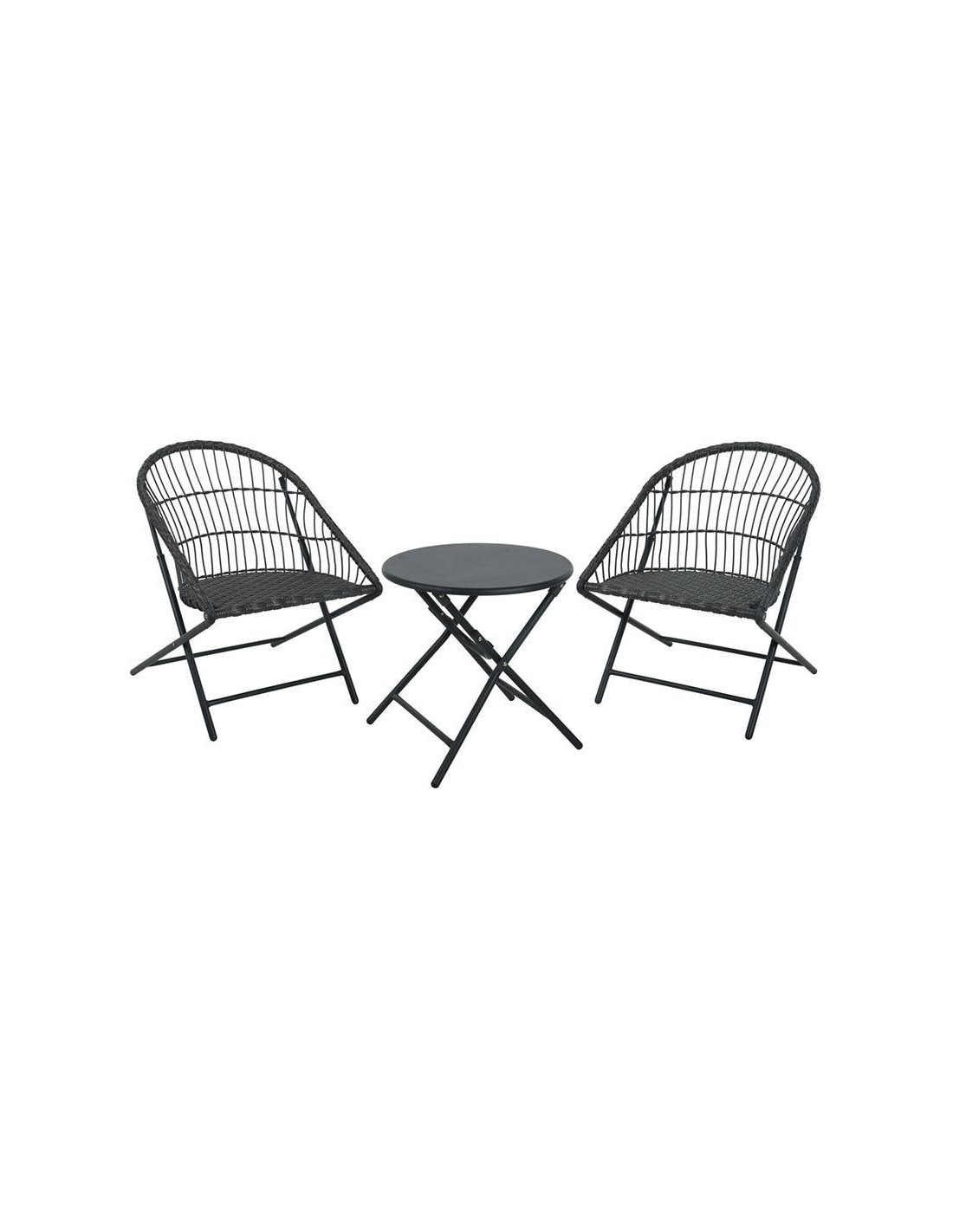 de ideale 2-persoons tuinset voor op je balkon of terras de luxe bestaat uit twee comfortabele tuinstoelen en een bijzettafel zowel de stoelen als de tafel zijn vouwbaar compact op te bergen comfortabel, lichtgewicht, compact zwart metaal totale gewicht van de set: ca. 15 kg afmeting tuinstoelen: 62 x 57 x H78 cm afmeting tuintafeltje: Ø45 x H44 cm max. draagkracht: 110 kg