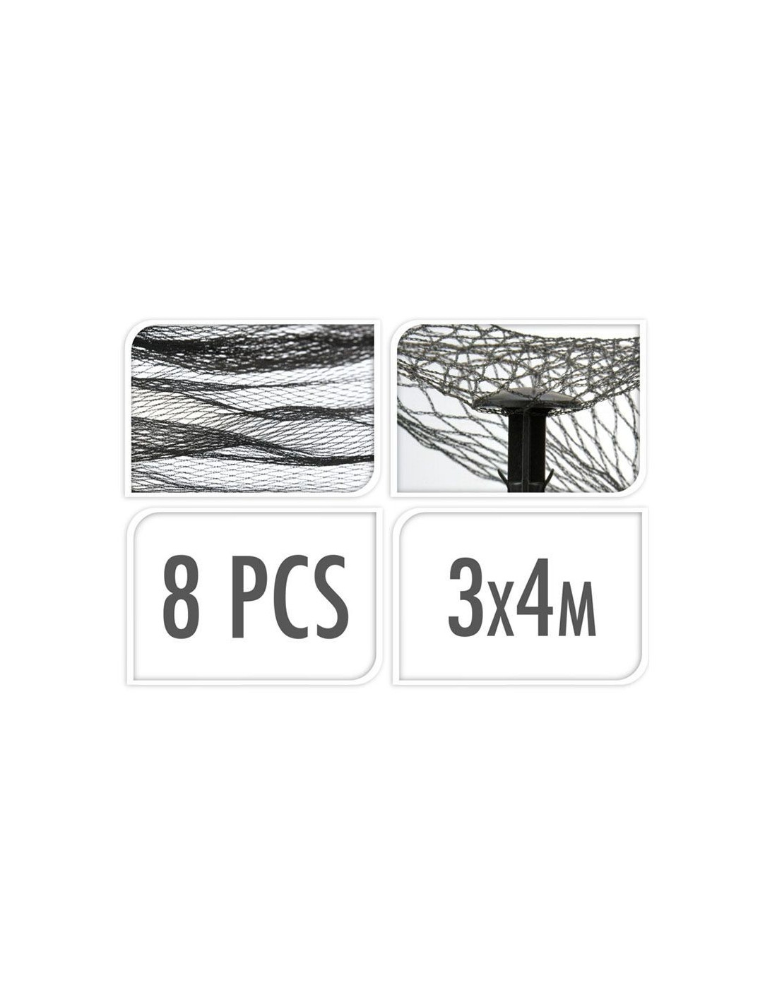 afmeting: 3 x 4 meter materiaal: mesh inclusief 8 grondnagels (10 cm)