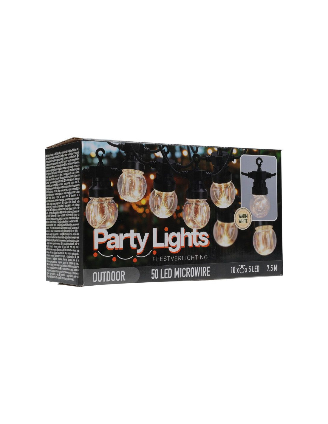 Creëer een betoverende ambiance in uw tuin met onze hoogwaardige feestverlichting. Deze elegante verlichting, met een totale lengte van 450 cm, bestaat uit 10 afzonderlijke lampen, elk voorzien van 5 micro-LED's. Deze warmwitte lichten zorgen voor een uitnodigende en gezellige sfeer in elk buitengebied.