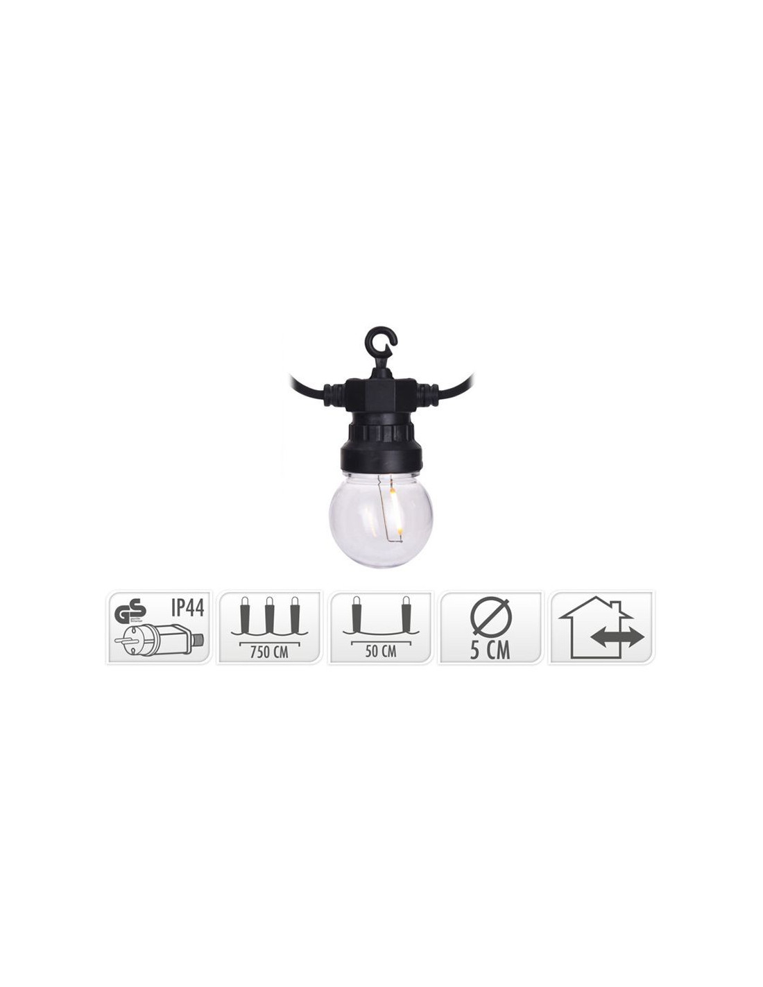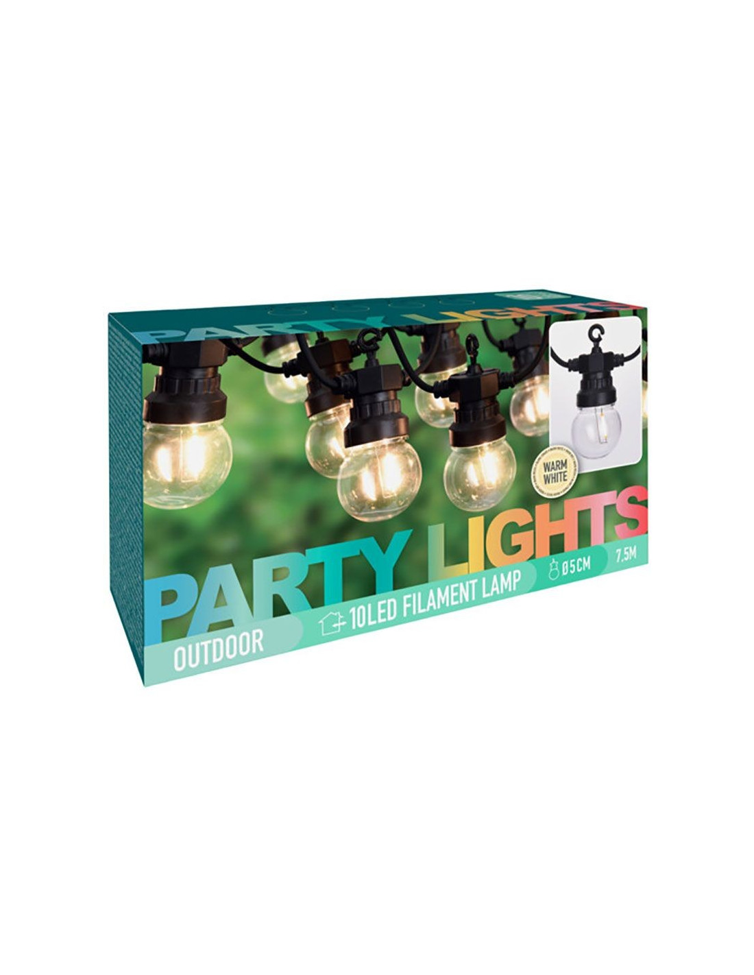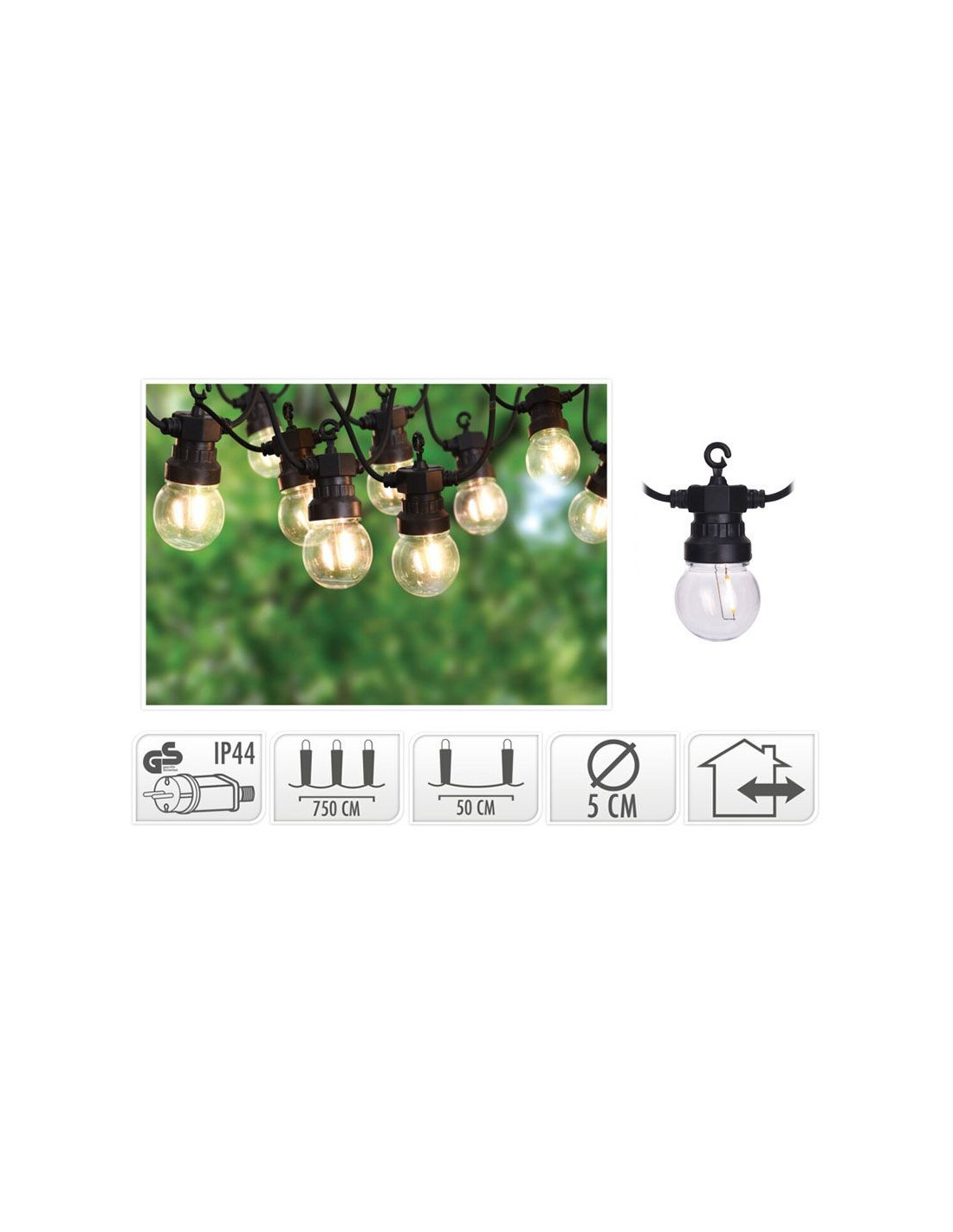 Verlicht je tuin, partytent of balkon met ons feestelijke lichtsnoer met 10 LED Filament Lampen! Met een warm witte kleur en nostalgische uitstraling, creëert dit hoogwaardige lichtsnoer een gezellige ambiance voor elke gelegenheid. Geschikt voor binnen en buiten dankzij de IP44 adapter. Eenvoudig op te hangen met een totale lengte van 7,5 meter. Bestel vandaag nog en geniet van magische avonden onder de betoverende verlichting van dit prachtige lichtsnoer!