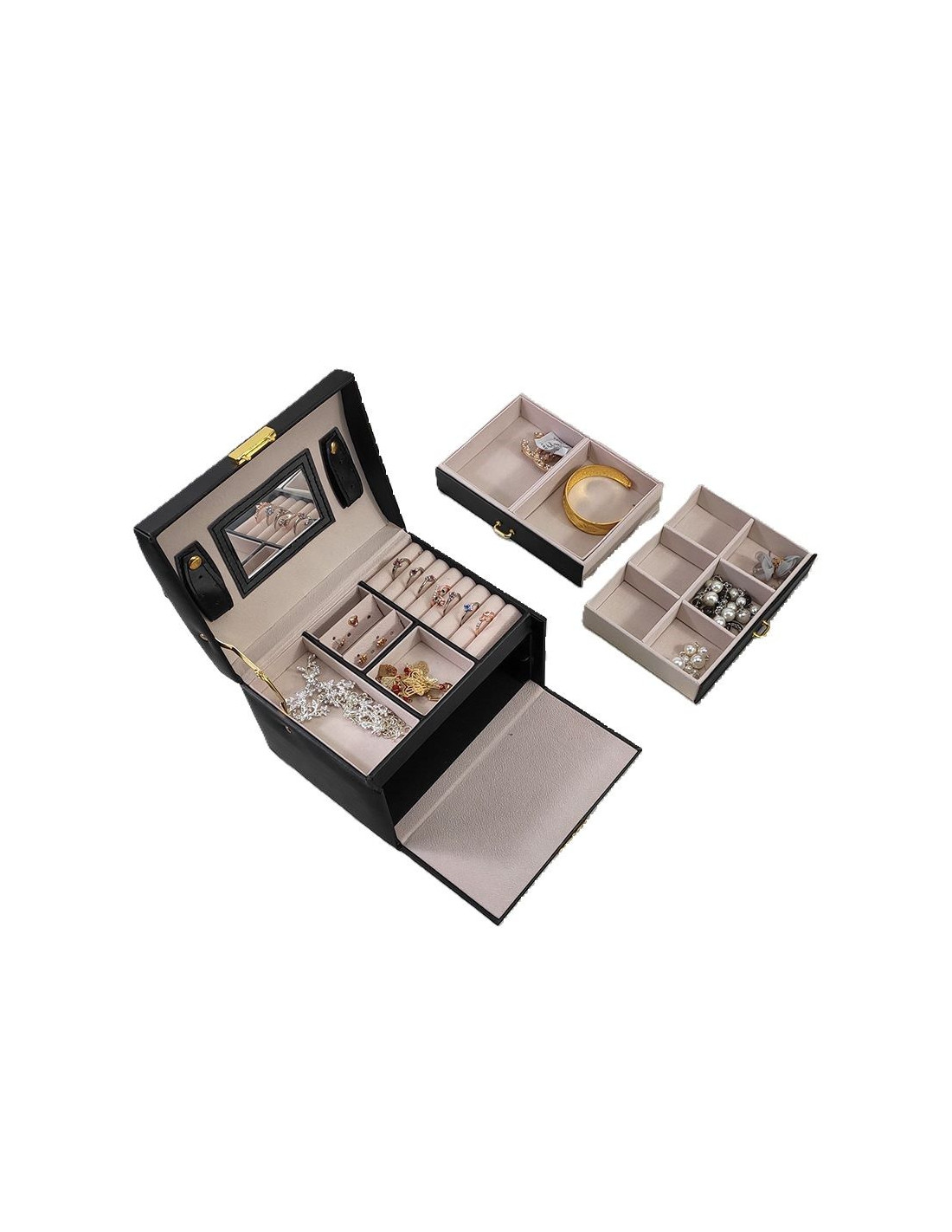 Op zoek naar een stijlvolle en praktische opbergoplossing voor je waardevolle sieraden? Ontdek de Ceruzo Sieradendoos met Spiegel! Vervaardigd uit hoogwaardig zwart PU-leer, biedt deze sieradendoos niet alleen een veilige opslag voor je kostbare bezittingen, maar voegt ook een vleugje elegantie toe aan je interieur.