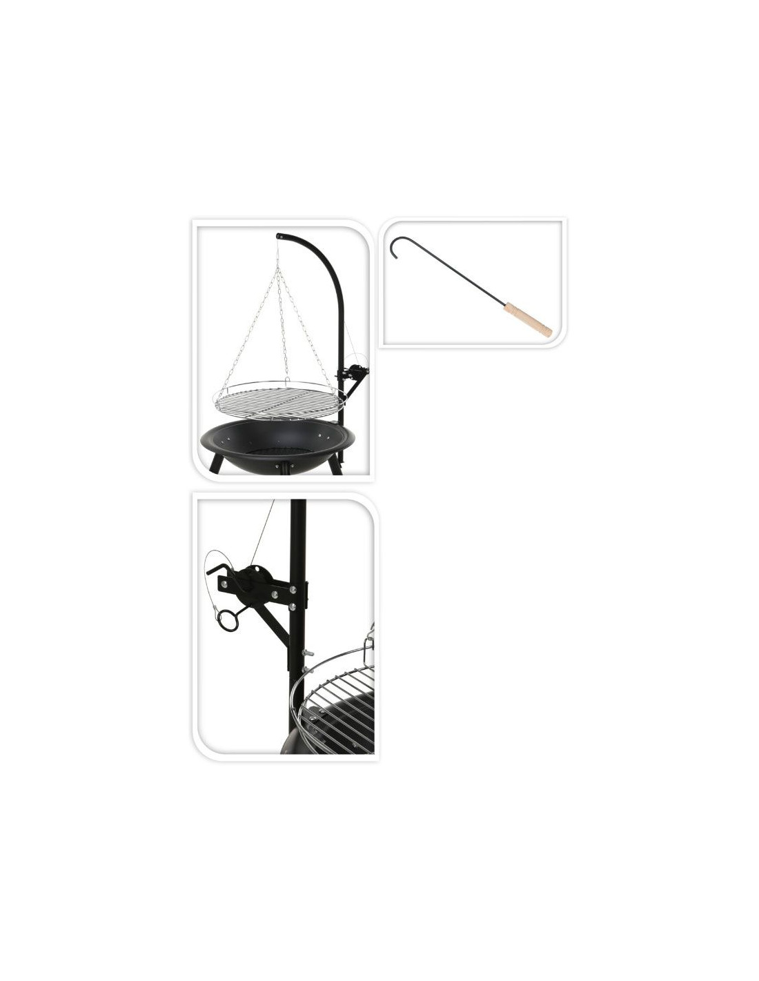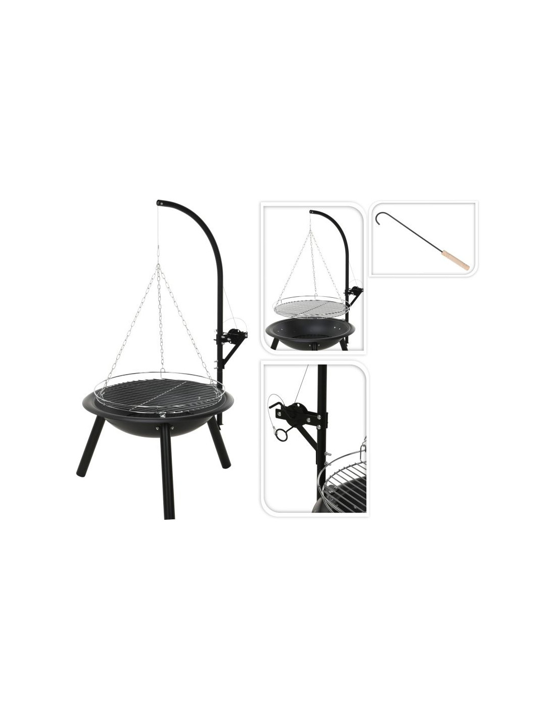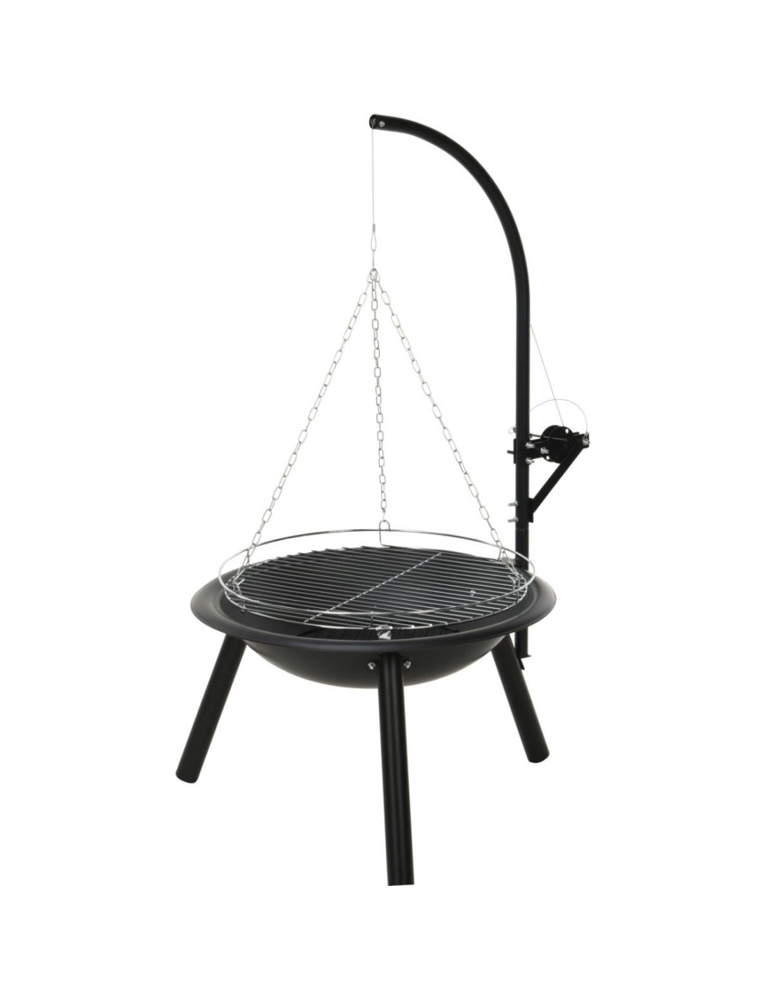 Het grillrooster met een diameter van 50 cm biedt voldoende ruimte voor diverse gerechten. Of je nu vlees grilt, groenten roostert of zelfs een pizza bakt, de mogelijkheden zijn eindeloos. De kookhoogte is eenvoudig verstelbaar met de meegeleverde ketting, waardoor je de controle houdt over de bereiding van je maaltijd.