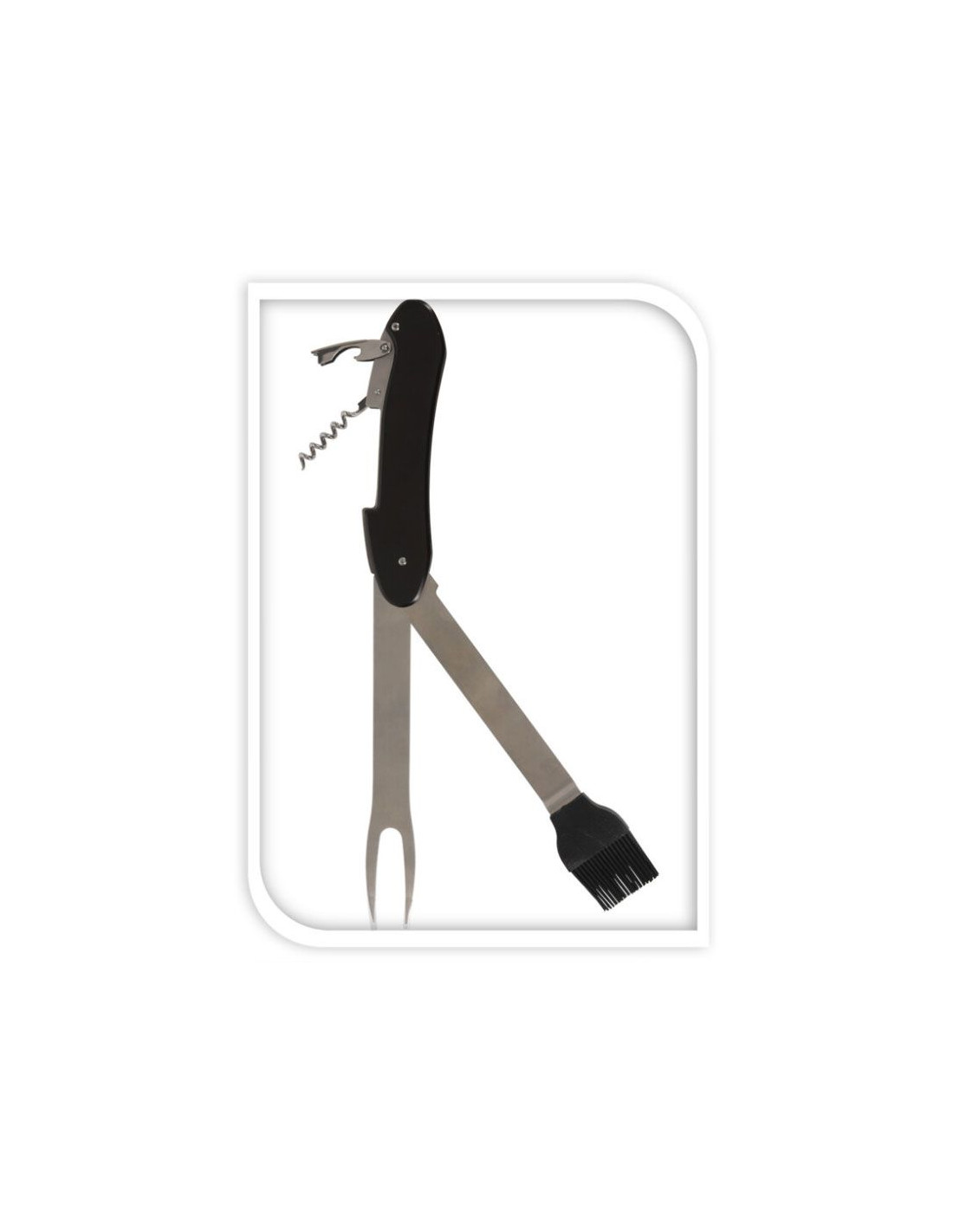 Verbeter uw barbecue-ervaring met onze 5-in-1 RVS Multitool. Deze handige, inklapbare tool combineert een vork, spatel, marinadeborstel, kurkentrekker en flessenopener in één stijlvol en duurzaam design. Ideaal voor BBQ-liefhebbers, deze 30 cm lange multitool is een echte must-have voor elke buitenkok.