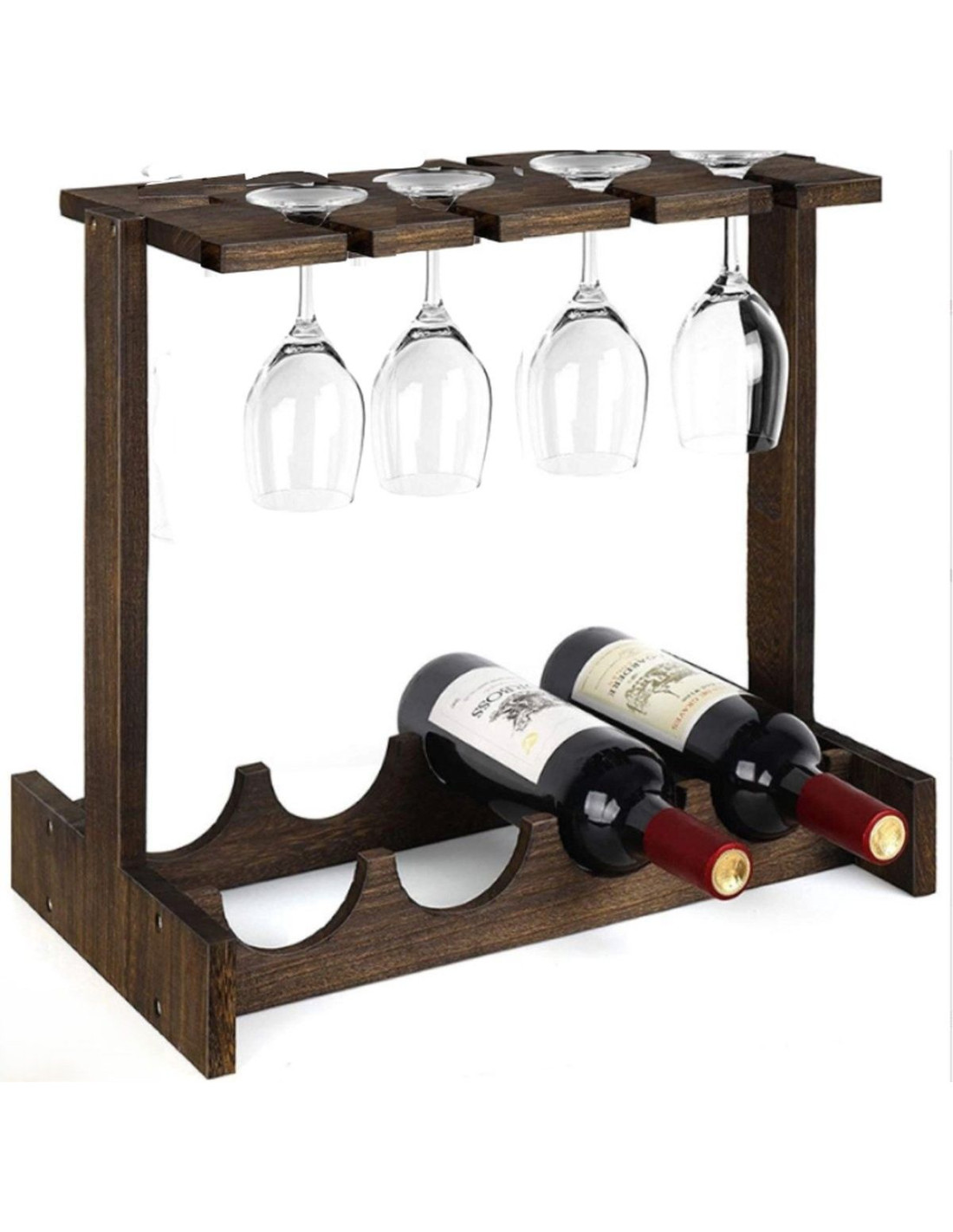 voor 4 wijnflessen en 4 wijnglazen materiaal: paulownia hout afmeting: 44 x 30 x H 40 cm montagetijd: 10 minuten merk: Ceruzo