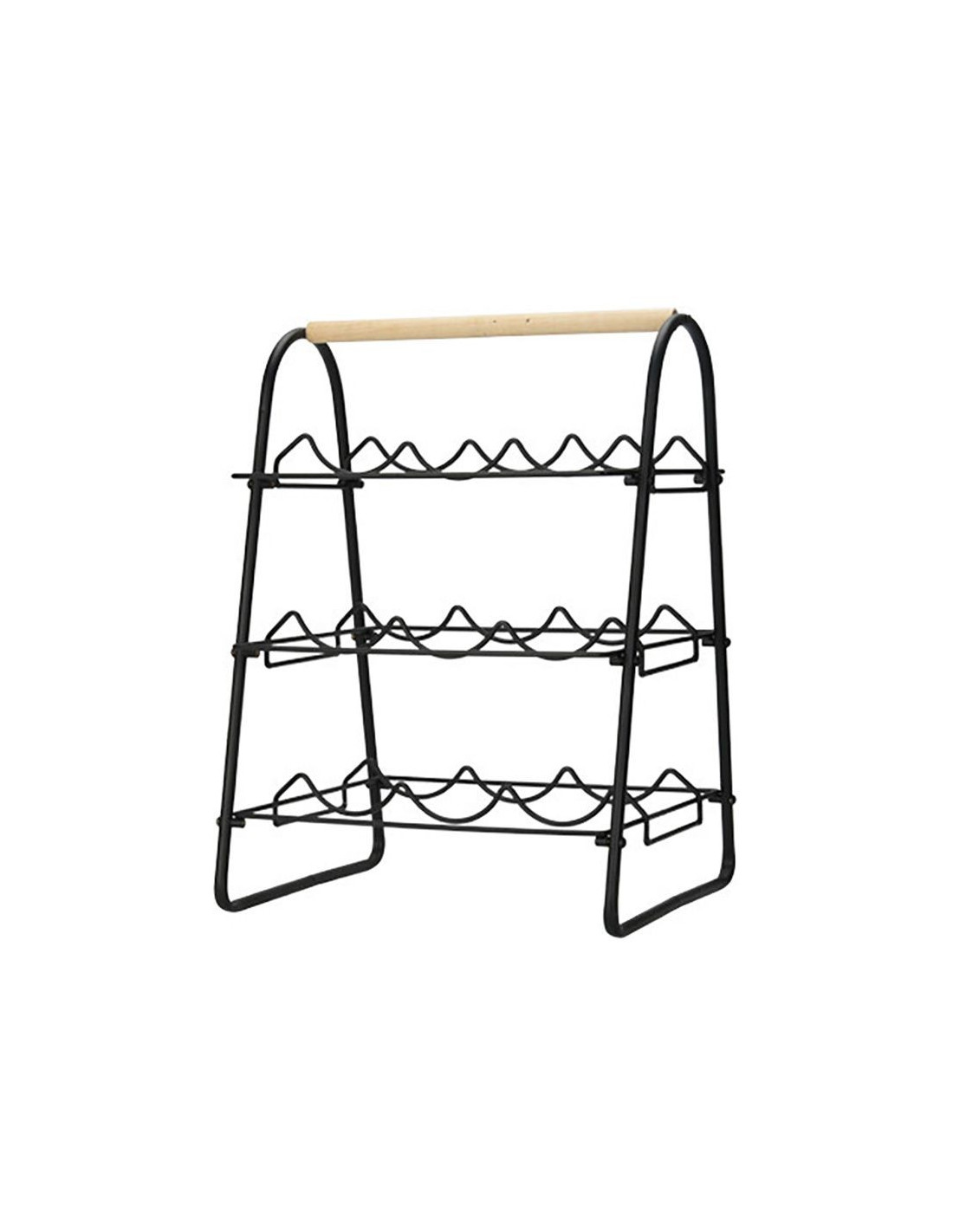 wijnrek voor 9 flessen metaal 33 x 29 x 46 cm handig te verplaatsen dankzij het houten handvat