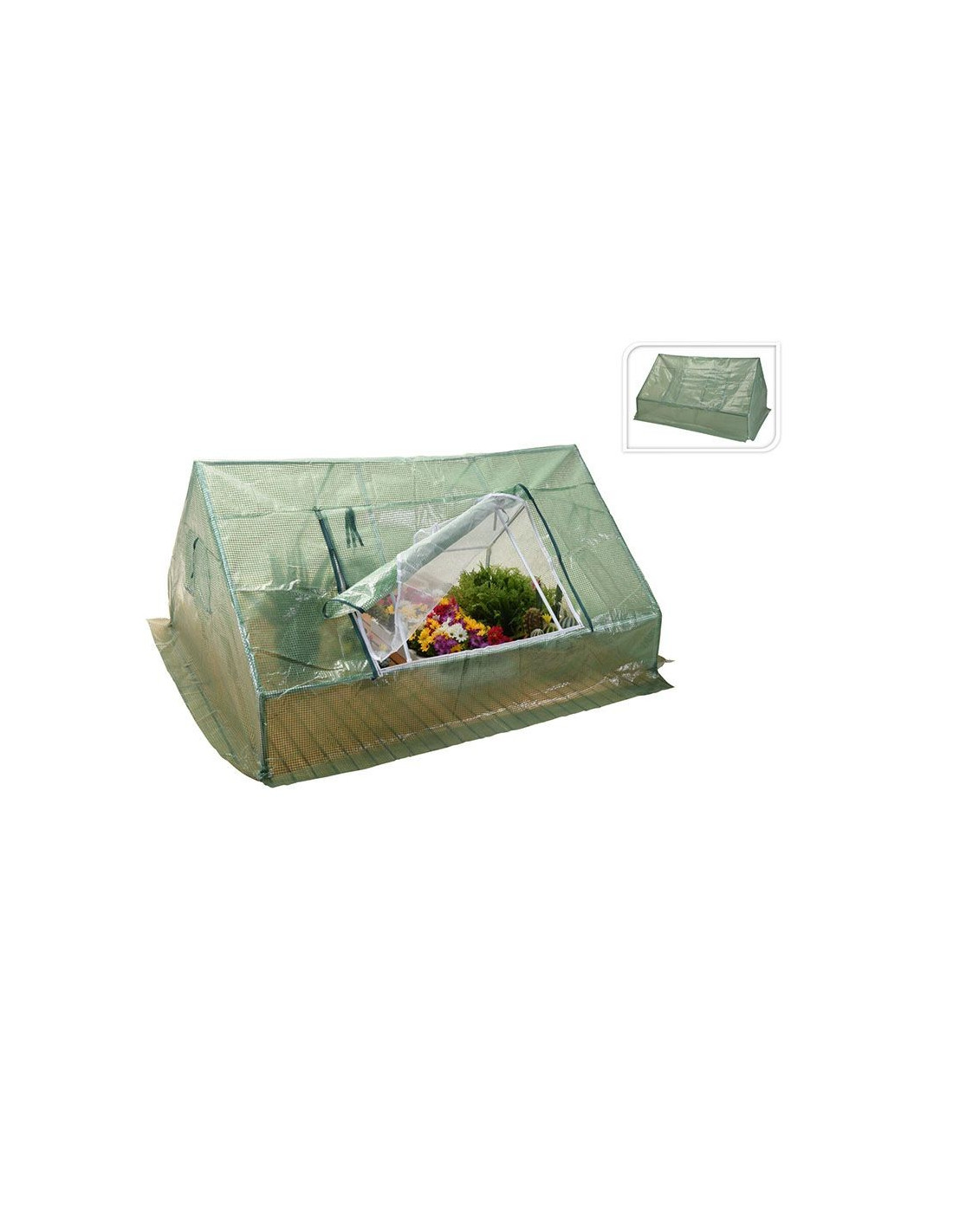 broeikas in huisvorm groen zeildoek met anti-UV, zodat schadelijke UV-straling wordt gefilterd. 2 ramen en deur met ritsopening afmeting: 180 x 133 x 93cm minimale hoogte 30cm totale hoogte 93cm